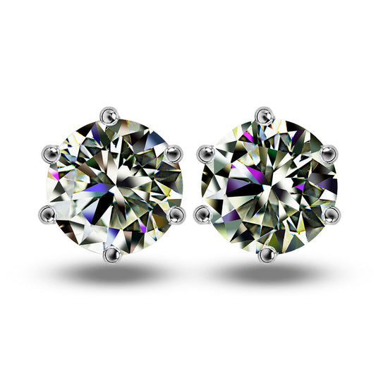 1 carat moissanite earrings feature a single 1 carat moissanite stone per earring. These earrings come in stud designs with 4, 6, or 8 prong settings for a timeless and sparkling look.