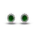 These elegant Diana-style earrings feature radiant natural emeralds set in a sophisticated design, accentuated by a halo of sparkling moissanite stones. Inspired by the timeless elegance of Princess Diana, these earrings combine the vibrant green of the emeralds with the brilliance of moissanites.