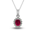 This breathtaking natural ruby Diana-style pendant features a stunning, deep red ruby as its centerpiece, framed by a halo of dazzling moissanite stones. The pendant's design, inspired by the elegance of Princess Diana, combines timeless sophistication with modern brilliance for a truly exceptional piece.