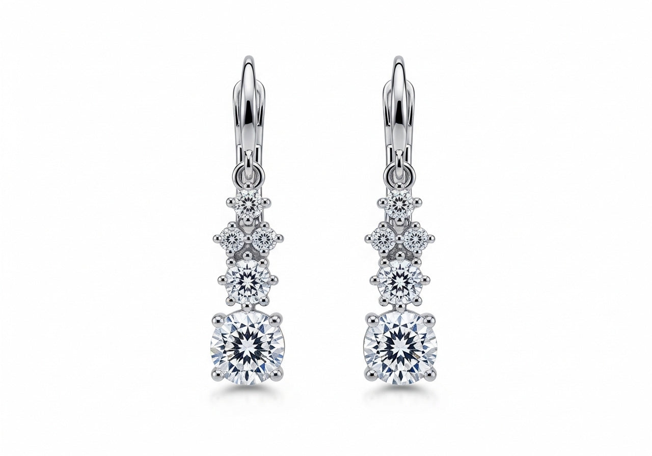 • Features high-quality moissanite stones with excellent clarity and fire, delivering a diamond-like appearance while remaining lightweight and comfortable for extended wear throughout the day or evening.