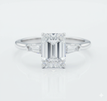 The Emerald Cut Moissanite Engagement Ring, Traditional Classic Design features a 2.00ct center stone with 0.20ct side stones, offering timeless elegance.