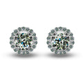 Introducing the exquisite earrings, featuring 1 carat Moissanite stones in the center surrounded by a  row of sparkling Moissanite diamonds. Crafted in 925 sterling silver, these earrings embody timeless elegance and breathtaking beauty.